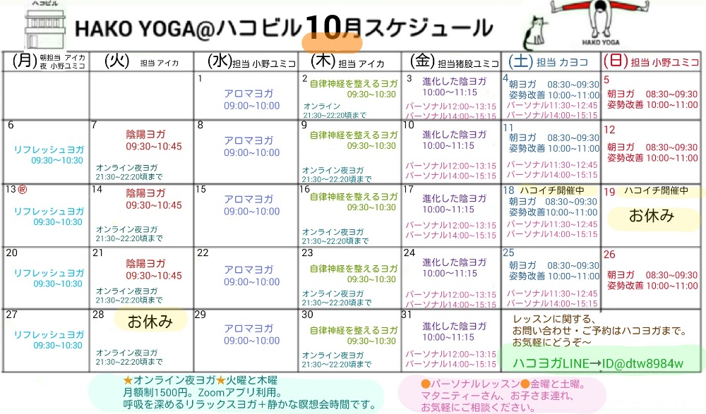 | 連絡先 | hakoyoga2016@gmail.com |