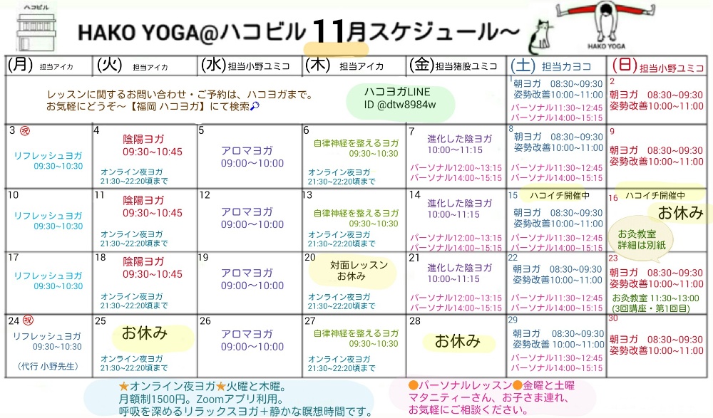 11月スケジュールを公開しました