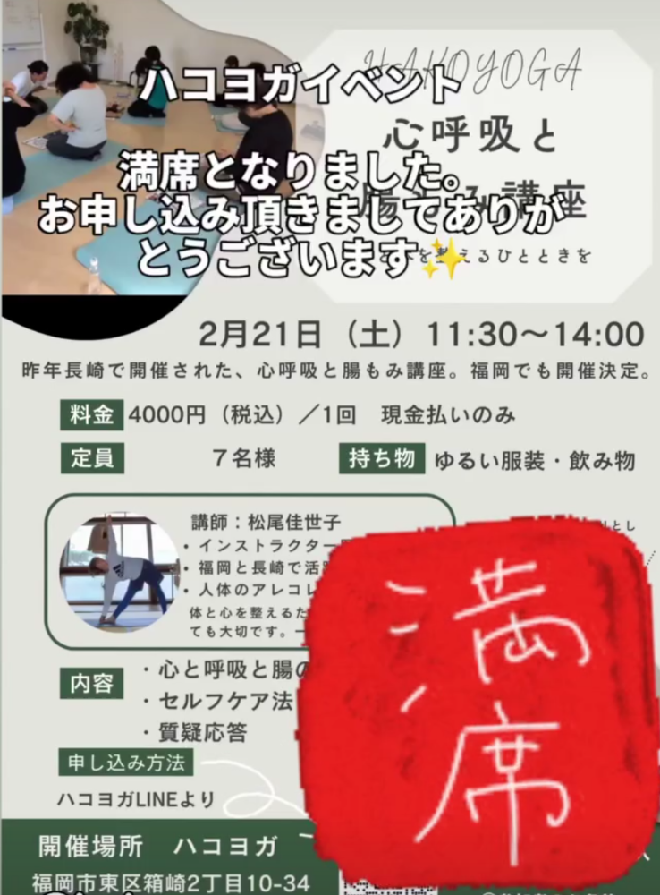 | 教室名 | HAKO YOGA(ハコヨガ・ヨガ教室) |